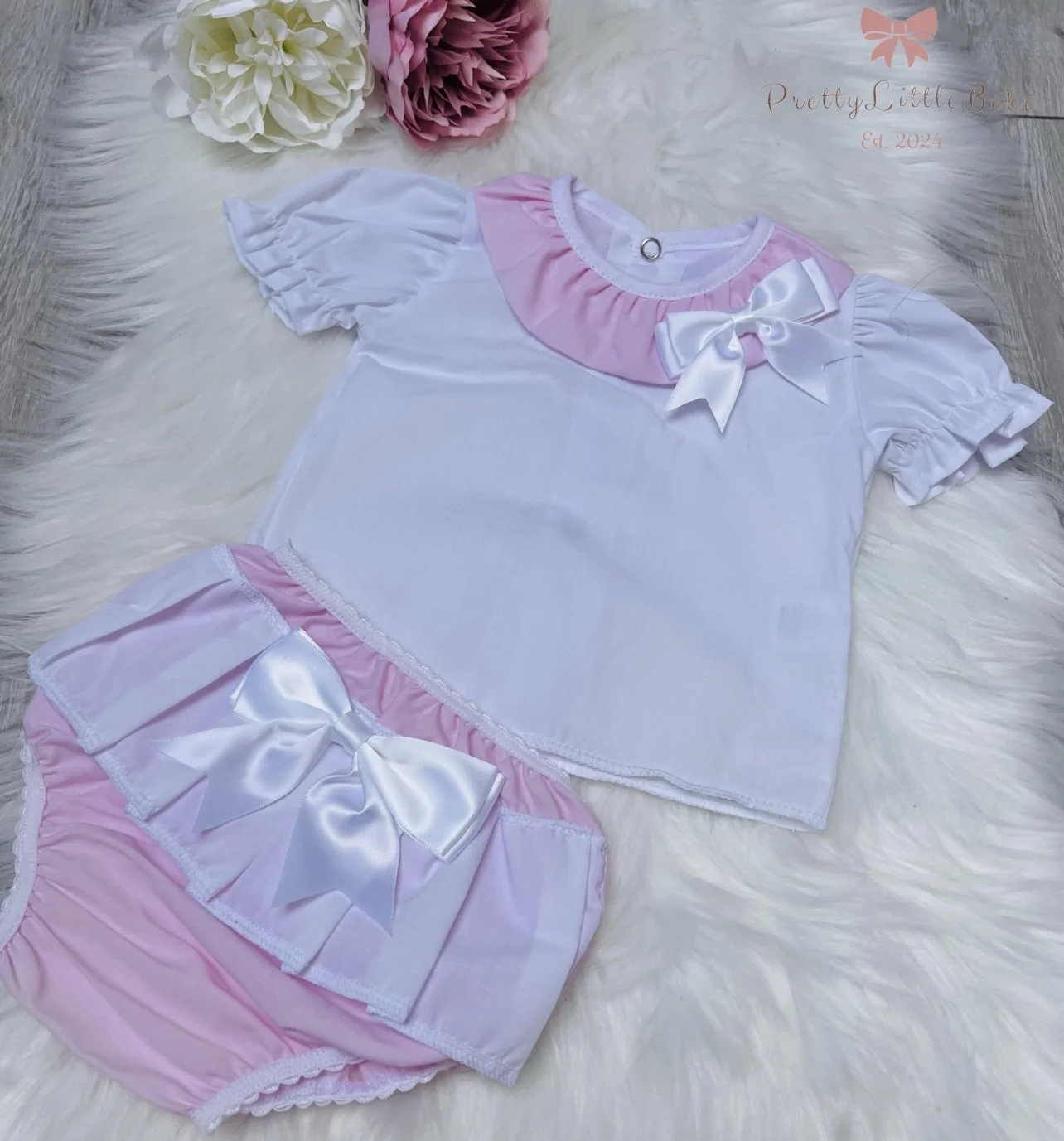 The Pink Bow Jam Pant Set is a stylish and pretty outfit for your baby girl. Made in Spanish-inspired design, this set features a cute pink bow accent and comfortable jam pants. Perfect for a fashionable and comfortable look.